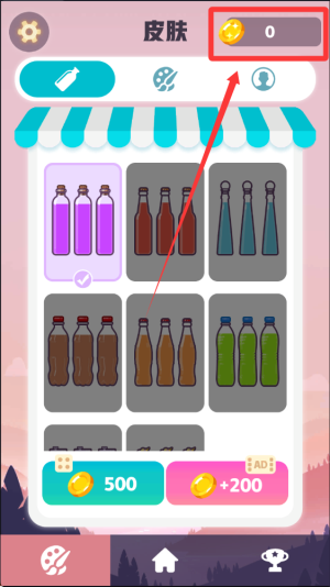 3、輔助系統(tǒng),使用通關獲得的金幣可兌換特殊道具如額外傾倒次數(shù)或路徑提示幫助突破難關。