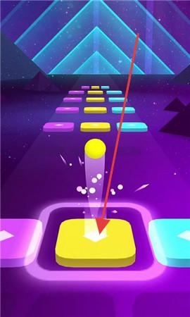 1、進(jìn)入關(guān)卡,小球隨音樂節(jié)奏前行,點(diǎn)擊屏幕讓其跳躍到對(duì)應(yīng)顏色瓷磚(黃、紫、藍(lán)等)。