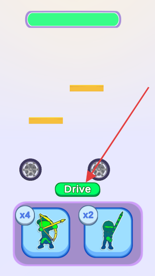 2、在該界面,點擊綠色【Drive】按鈕,可選用下方弓箭手、武士等角色助力,驅動車輪前行。