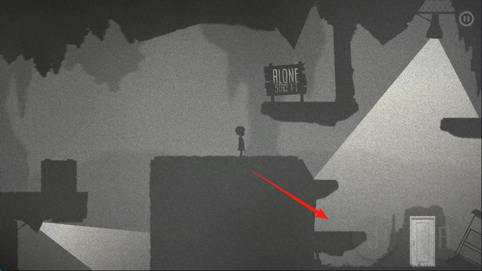 3、啟動游戲選灰色球,操控角色在灰暗場景,按箭頭方向前進解謎。