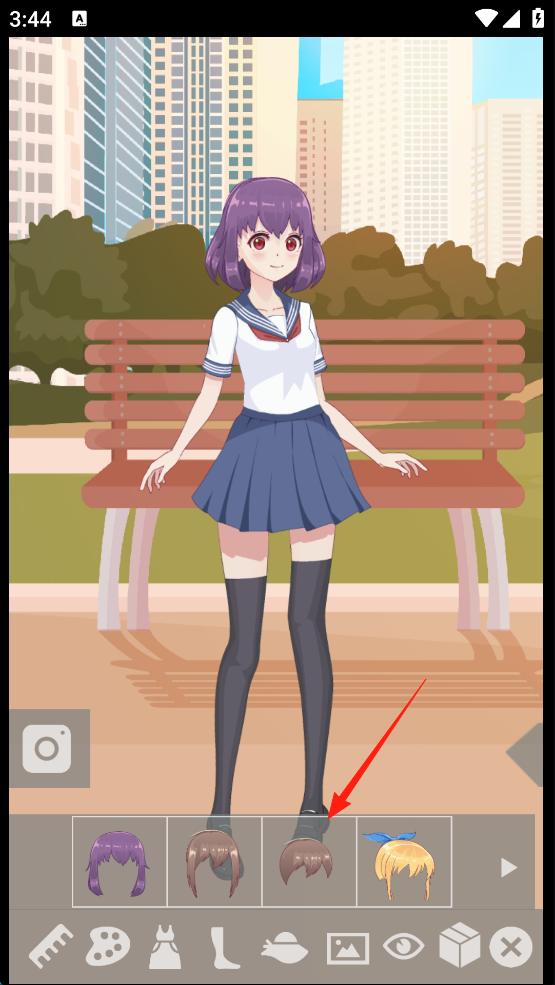 2、進(jìn)入界面后,從底部發(fā)型欄選樣式,替換角色頭發(fā),設(shè)計(jì)造型。