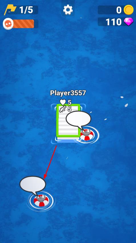 1.進(jìn)入游戲后在初始海域拖動(dòng)木筏移動(dòng),點(diǎn)擊屏幕下方武器按鈕切換標(biāo)槍、炸彈等攻擊方式,靠近敵筏時(shí)自動(dòng)發(fā)動(dòng)攻擊。