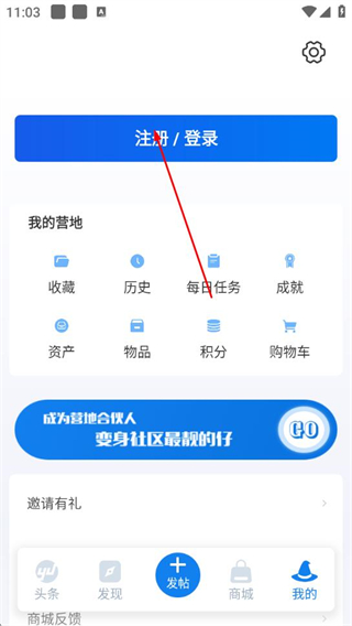 2、在個人中心頁面點擊注冊/登錄,進入注冊登錄界面。