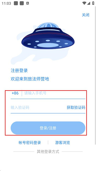 3、輸入手機號,獲取并輸入驗證碼,點擊登錄/注冊,完成注冊操作。