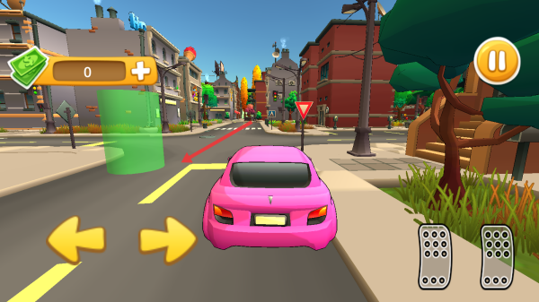 3、用方向和油門鍵,操控汽車駛向城市綠色目標(biāo)區(qū)。