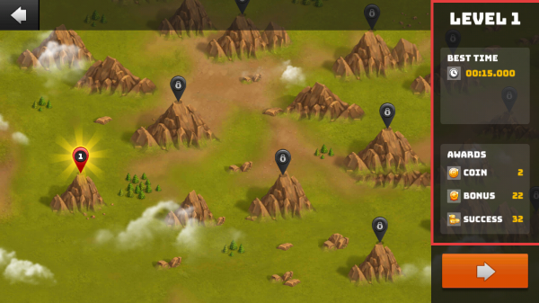 2、在【LEVEL1】關(guān)卡中,點(diǎn)擊【黃色箭頭】,多變的地圖上開始挑戰(zhàn)。
