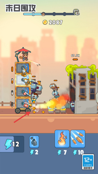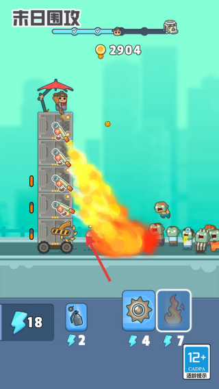 1、建筑堆疊疊加武器塔(火箭、火焰),組合不同攻擊模塊,提升對(duì)僵尸的傷害。