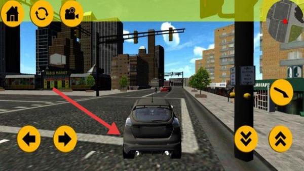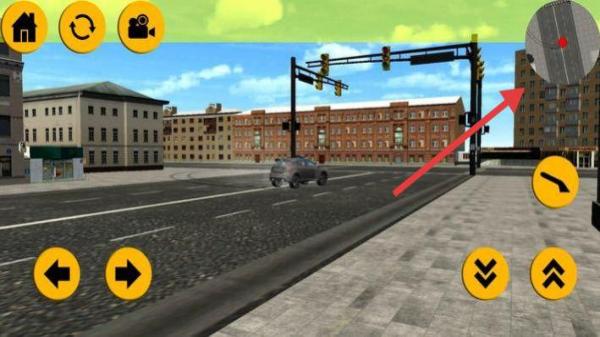 2、關(guān)注右上角小地圖,依據(jù)其指引,在城市道路中規(guī)劃行駛路線。