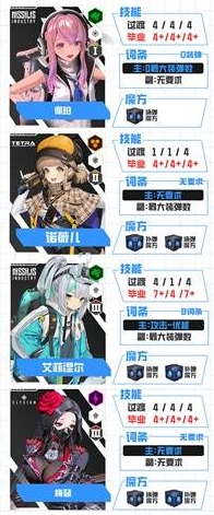 2、養(yǎng)成【晴日、諾薇兒、艾麗塞爾、緋嶺】:晴日輔助增益,諾薇兒防御輔助,艾麗塞爾、緋嶺輸出側重特定環(huán)境,作為T2角色可補位培養(yǎng)。