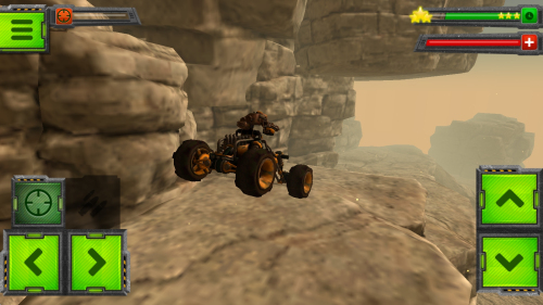 3、通過(guò)虛擬按鍵操控卡車移動(dòng),結(jié)合射擊按鈕完成戰(zhàn)斗與特技動(dòng)作。