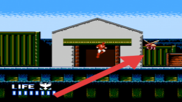 2、關(guān)卡中,控制紅鷹向右移動,接近箭頭指向的敵人(飛行怪物),準(zhǔn)備攻擊、清除障礙。