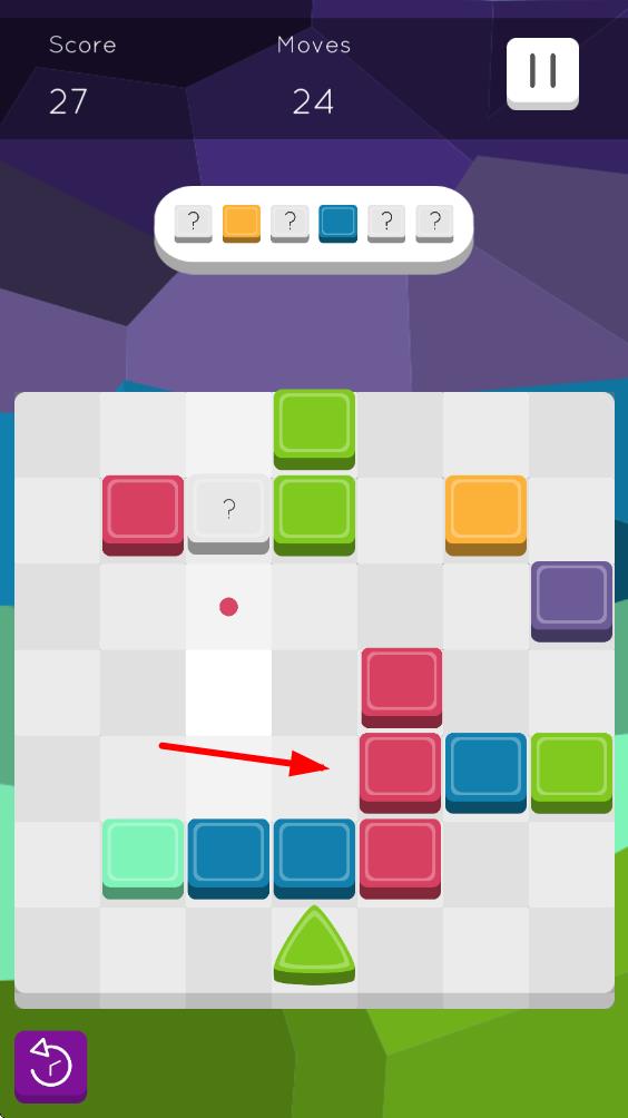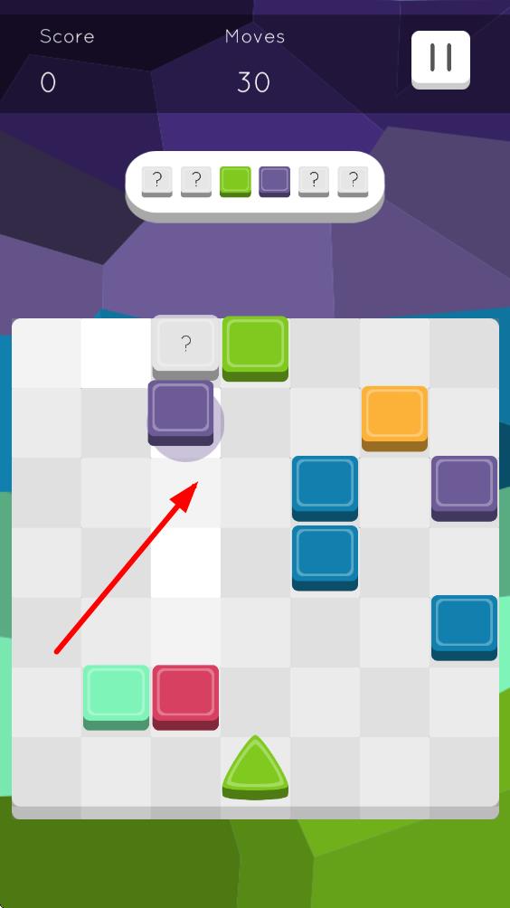 1、進入界面后滑動屏幕調(diào)整色塊位置,點擊空白處確認移動,首次操作優(yōu)先消除邊緣密集色塊以打開局面。