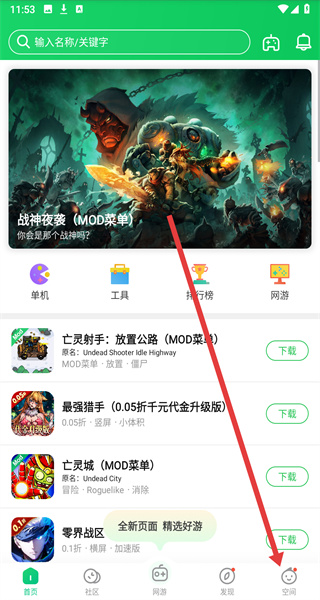 1、在進(jìn)入到應(yīng)用首頁(yè)中,可以點(diǎn)擊右下方空間按鈕,進(jìn)入我的空間。
