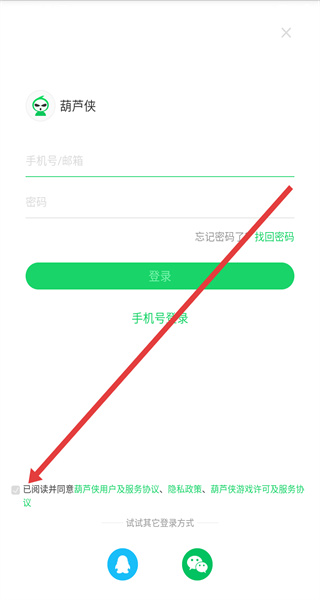 3、進(jìn)入登錄頁(yè)面后,在開(kāi)始登錄操作前,需先點(diǎn)擊勾選下方已閱讀并同意按鈕。