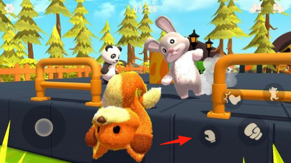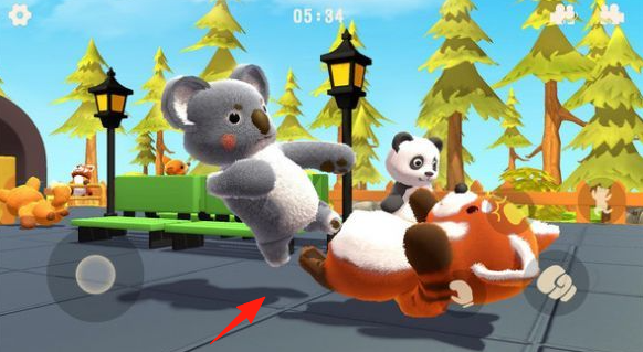 2、趣味對抗點擊拳套按鈕,與其他動物(熊貓、小熊貓)近戰(zhàn)互毆,推擠、抓取對手,制造淘汰。