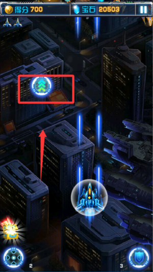 1、開始游戲后選擇初始戰(zhàn)機(jī),熟悉射擊和移動(dòng)的操作方式,靈活走位躲避敵方彈幕,提升生存能力。