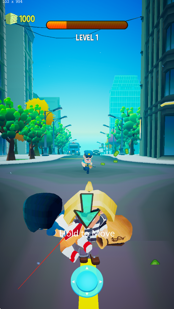 2、搶劫后屏幕出現(xiàn)紅色警徽倒計時,需快速穿越小巷、跳上屋頂躲避追捕,拾取路上的能量飲料可加速奔跑,香蕉皮能滑倒警察拖延時間。