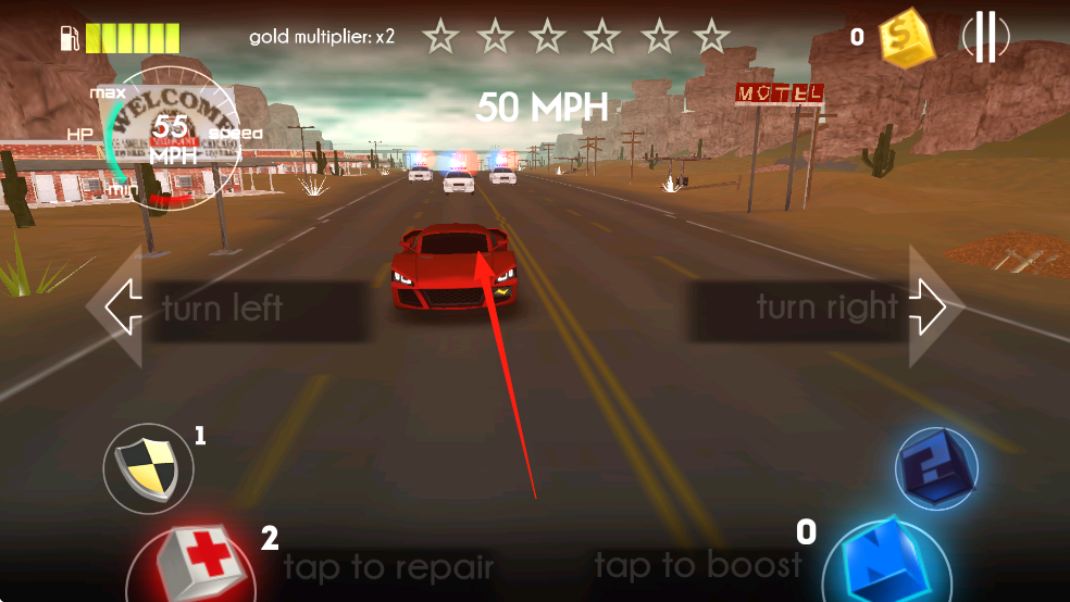 1、基礎(chǔ)操作體系:點(diǎn)擊屏幕控制加速與剎車,滑動(dòng)屏幕控制方向盤,長(zhǎng)按屏幕觸發(fā)氮?dú)饧铀?,通過(guò)組合操作完成復(fù)雜駕駛?cè)蝿?wù)操作簡(jiǎn)單直觀,讓玩家專注策略規(guī)劃。