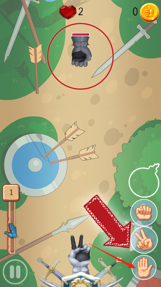 3、沿箭頭路線前行,碰到敵人,選擇合適手勢(如手掌),完成挑戰(zhàn)推進(jìn)。