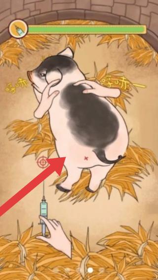 2、畫面呈現(xiàn)給豬打針的互動場景,豬身上有“哼哧”等擬聲詞,屬于模擬農(nóng)場或動物照料類,展現(xiàn)養(yǎng)殖過程中給動物打針護理的環(huán)節(jié)。