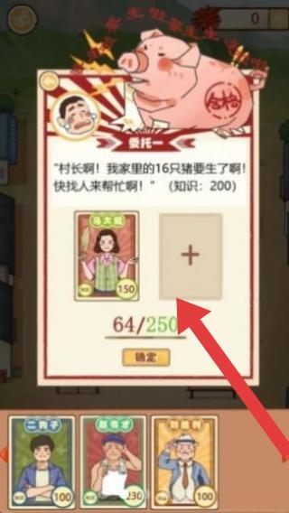 3、村民“愛花”發(fā)布任務(wù),內(nèi)容是16只豬要生需找人幫忙,已選“馬愛花”(150),還可添加角色,呈現(xiàn)處理村民求助、調(diào)配人力的任務(wù)場景。