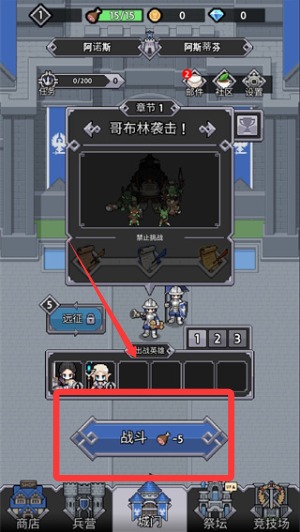 2、然后點(diǎn)擊屏幕下方的戰(zhàn)斗消耗體力開始戰(zhàn)斗。