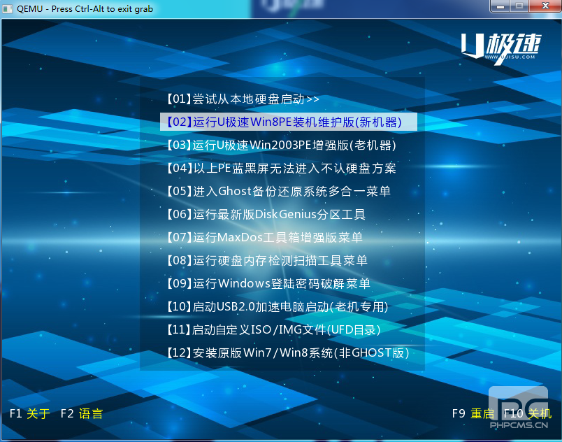 我們可以通過軟件自帶的"啟動模擬器"進行U盤啟動盤的啟動測試操作,在彈出的電腦模擬器窗口可以看到模擬電腦開機啟動U盤的界面,測試完畢按住"Ctrl+Alt"組合鍵即可關(guān)閉窗口(測試過程千萬不要進行測試PE系統(tǒng)等工具),如圖所示: