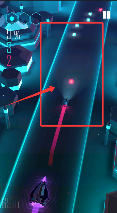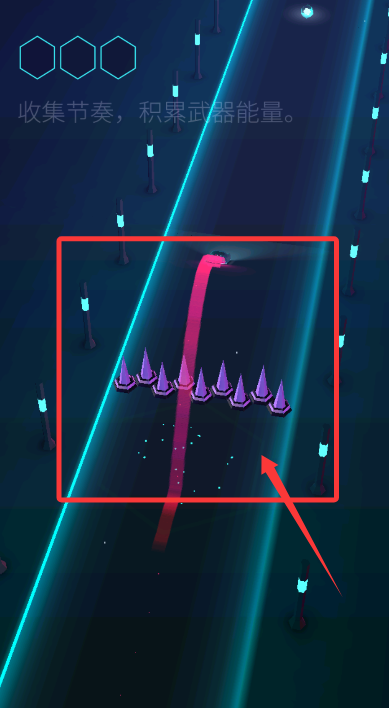 2、控制跑車左右變道,沿途收集能量晶體與節(jié)奏音符,為后續(xù)沖刺積蓄動力。