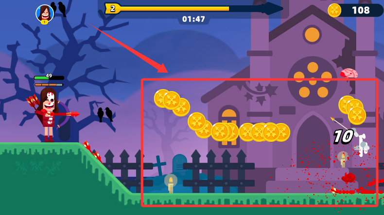 3、戰(zhàn)斗中收集金幣,可用于強(qiáng)化弓箭或解鎖角色,持續(xù)推進(jìn)關(guān)卡挑戰(zhàn)更多難關(guān)。