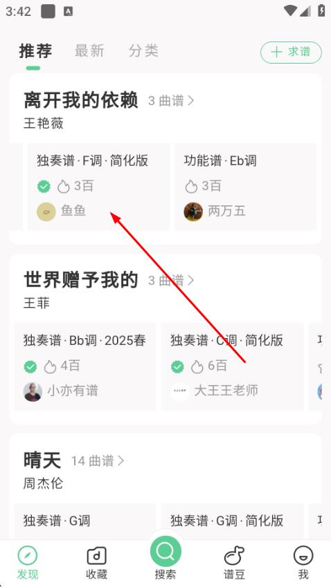 1、打開有譜么App,在推薦頁面找到想要查看的譜子,點擊進入。