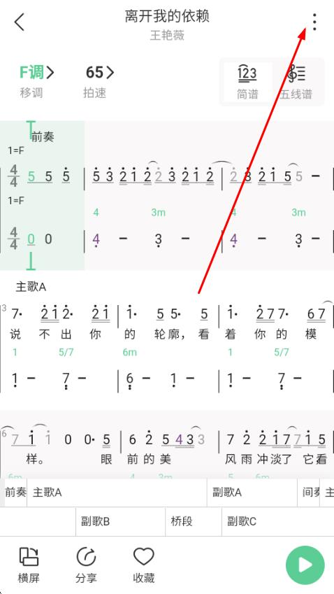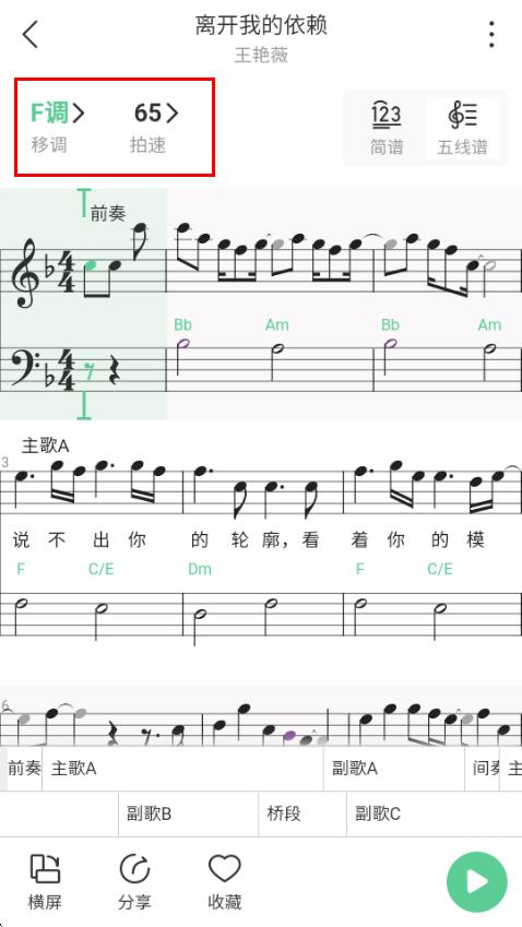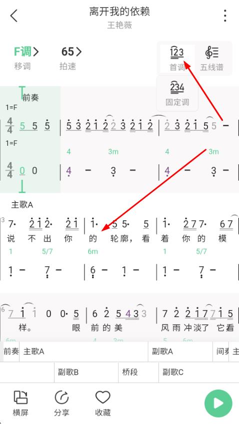 3、若習慣看簡譜,點擊簡譜選項切換顯示,想看五線譜,點擊五線譜。
