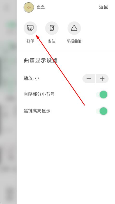 5、在彈出的界面中,可進行打印、設置曲譜顯示等操作,方便查看譜子。