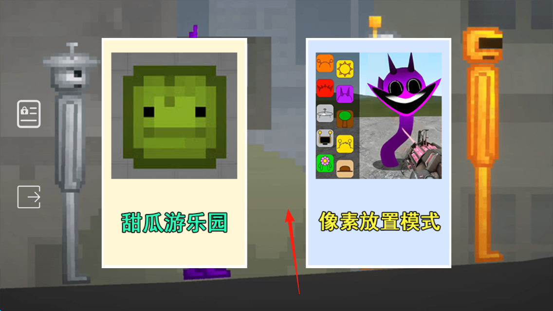 1、選擇模式,進(jìn)入甜瓜游樂園或像素放置,體驗(yàn)不同玩法,推進(jìn)進(jìn)程。