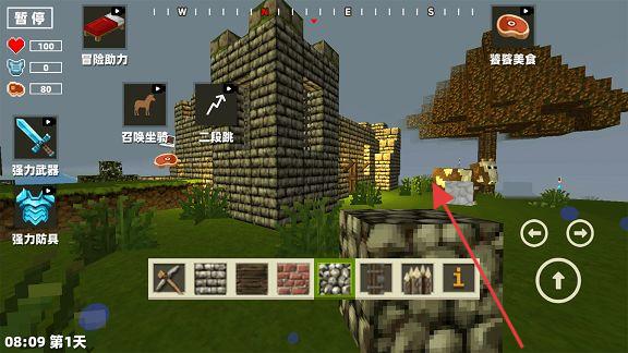 2、收集材料,搭建建筑,召喚坐騎,利用二段跳,探索像素世界。
