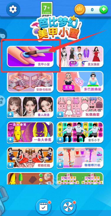 1、進入游戲主界面,選擇“美甲小屋”模塊,開啟美甲挑戰(zhàn)關(guān)卡。