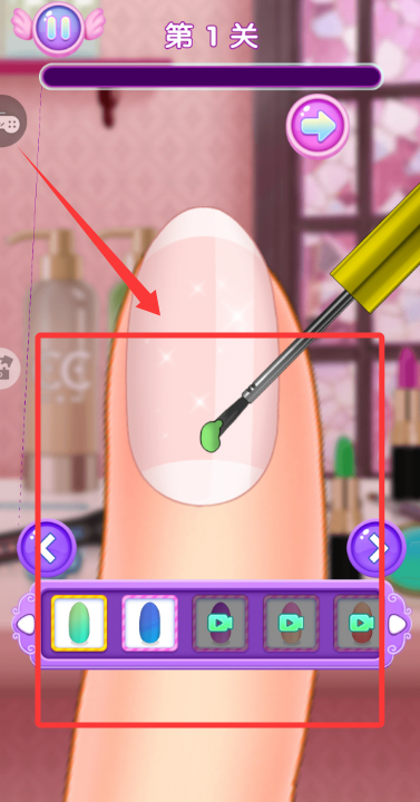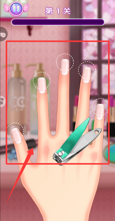 2、在關(guān)卡內(nèi),借助工具修整指甲外形,讓指甲呈現(xiàn)整潔的基礎狀態(tài)。