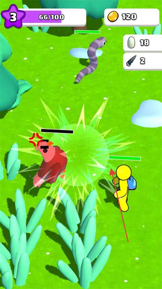 2、操控角色,在草地攻擊動(dòng)物,獲取資源,提升等級(jí),解鎖新區(qū)域。