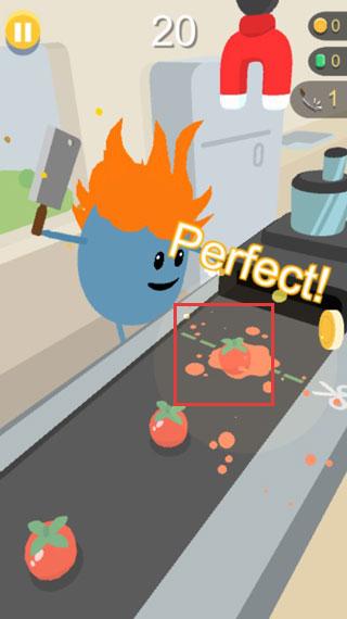 3、然后就是切水果了,切割迎面而來(lái)的水果和蛋糕來(lái)進(jìn)行榨汁,但不要切到電器哦。