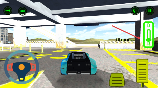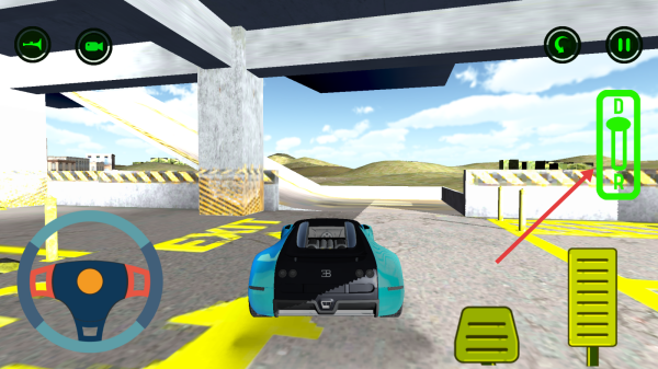 2、駕駛時(shí)用虛擬方向盤控方向,右側(cè)換擋區(qū),根據(jù)車速切換【D(前進(jìn))、R(倒車)】擋。