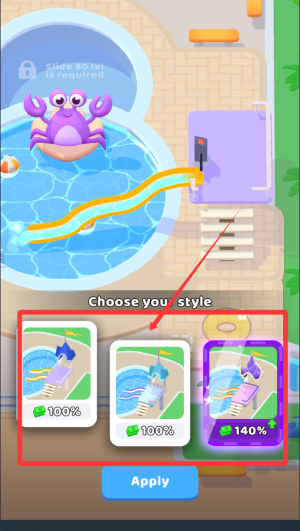 1、游戲內(nèi)置海量裝飾素材庫,涵蓋炫酷水滑梯、熱帶風(fēng)情景觀和創(chuàng)意拍照區(qū)等豐富元素,讓玩家能夠自由發(fā)揮創(chuàng)意打造個性化水上樂園。