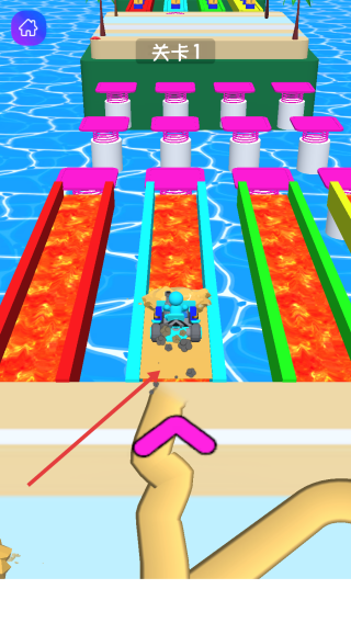 3、遇粉色機(jī)關(guān),按提示操作(如箭頭指引),觸發(fā)機(jī)關(guān),通過后續(xù)路段,完成闖關(guān)。