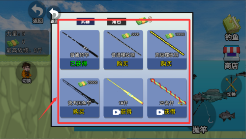 1、先解鎖基礎釣魚工具,比如魚竿和魚餌,選擇合適的水域開始練習。