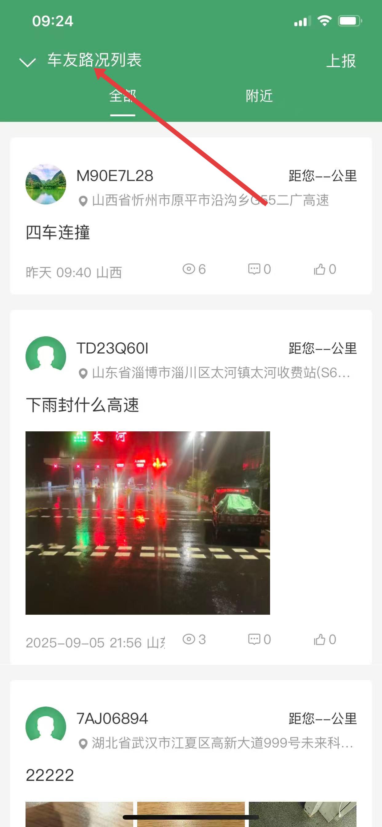 4、在路況界面,點擊車友路況列表,還能查看其他車友上報的路況信息,了解更多實時情況。
