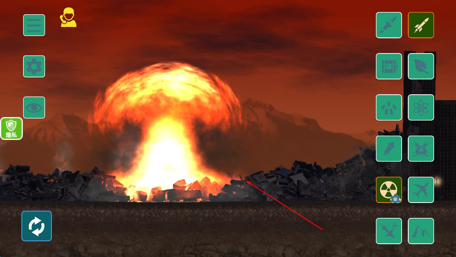 2、游戲中途,可同時(shí)激活多種災(zāi)害,觀察龍卷風(fēng)與地震疊加、核彈與飛碟協(xié)同的破壞效果,適時(shí)切換場(chǎng)景或更換武器類型。