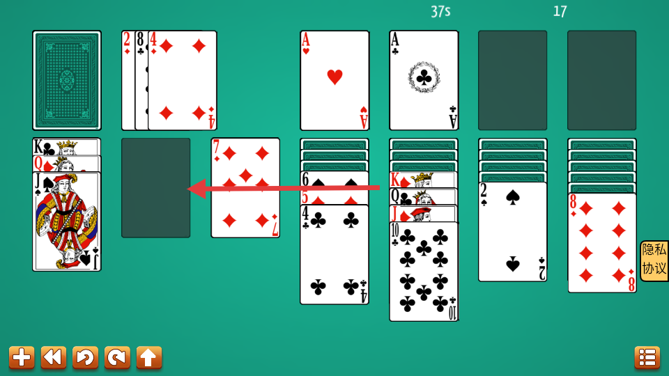 1、拖動(dòng)紙牌按從K到A的順序排列,別問為什么不能倒著來,規(guī)則比數(shù)學(xué)老師還固執(zhí)。
