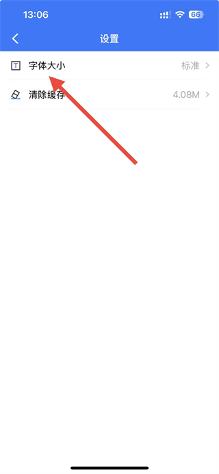 3、在設(shè)置頁面,點(diǎn)擊字體大小選項,進(jìn)入字體大小調(diào)整頁面。