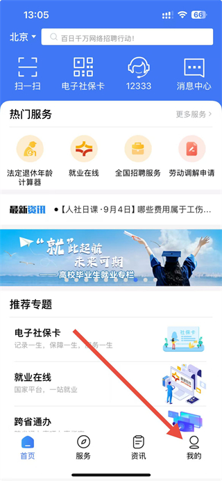 1、打開掌上12333app,點(diǎn)擊底部導(dǎo)航欄中的我的選項。