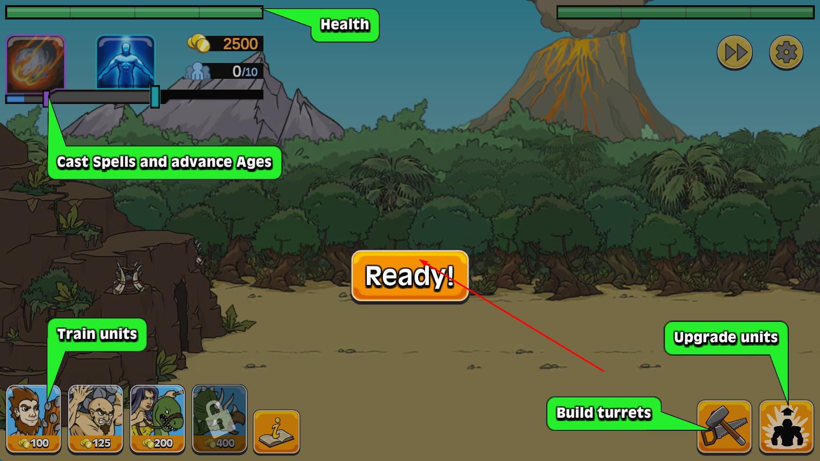 1、初入游戲從石器時(shí)代開(kāi)始,招募原始士兵組建軍團(tuán),通過(guò)闖關(guān)解鎖基礎(chǔ)塔防建筑,抵御首批敵人進(jìn)攻,積累文明發(fā)展資源。