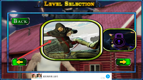 2、在關(guān)卡選擇頁(yè),選解鎖的忍者關(guān)卡(紅框),點(diǎn)箭頭,進(jìn)入任務(wù),目標(biāo)完成刺殺/潛入。