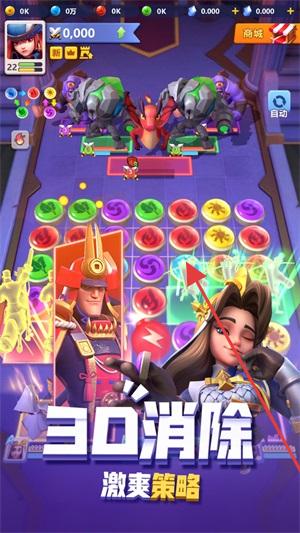 2、參與【3D消除爽策略】玩法,滑動消除同色棋子,觸發(fā)英雄技能,攻擊敵方,注意技能釋放時機。